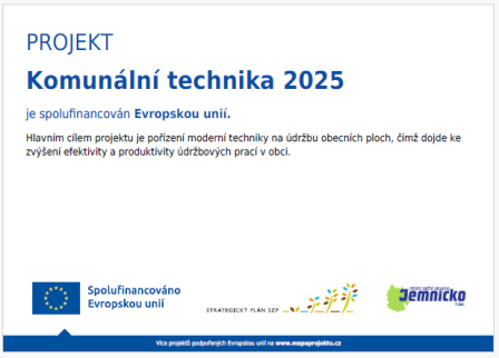 Hlavním cílem projektu je pořízení moderní techniky na údržbu obecních ploch, čímž dojde ke zvýšení efektivity a produktivity údržbových prací v obci.